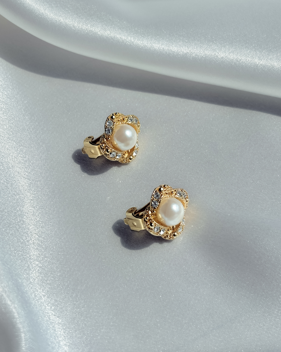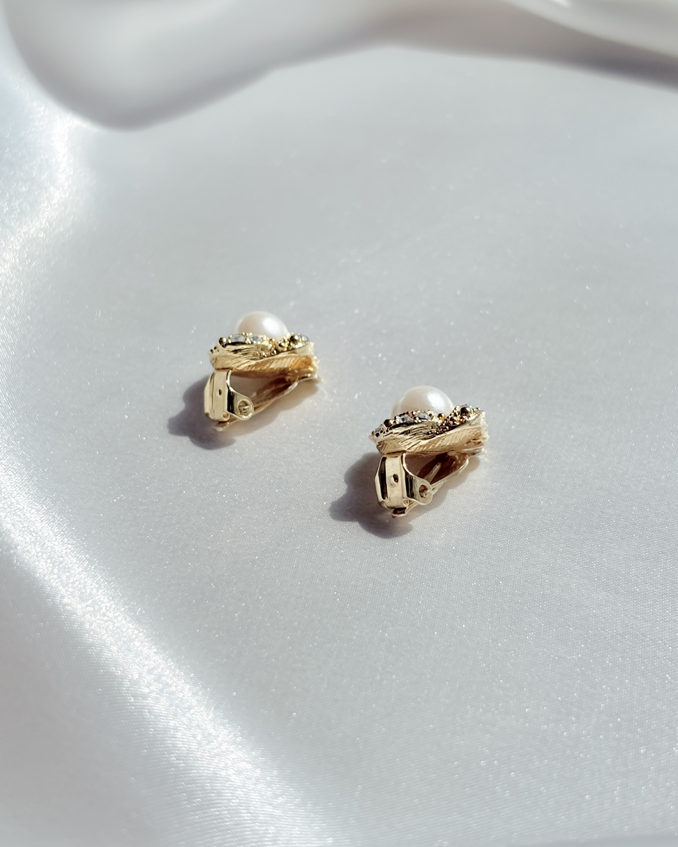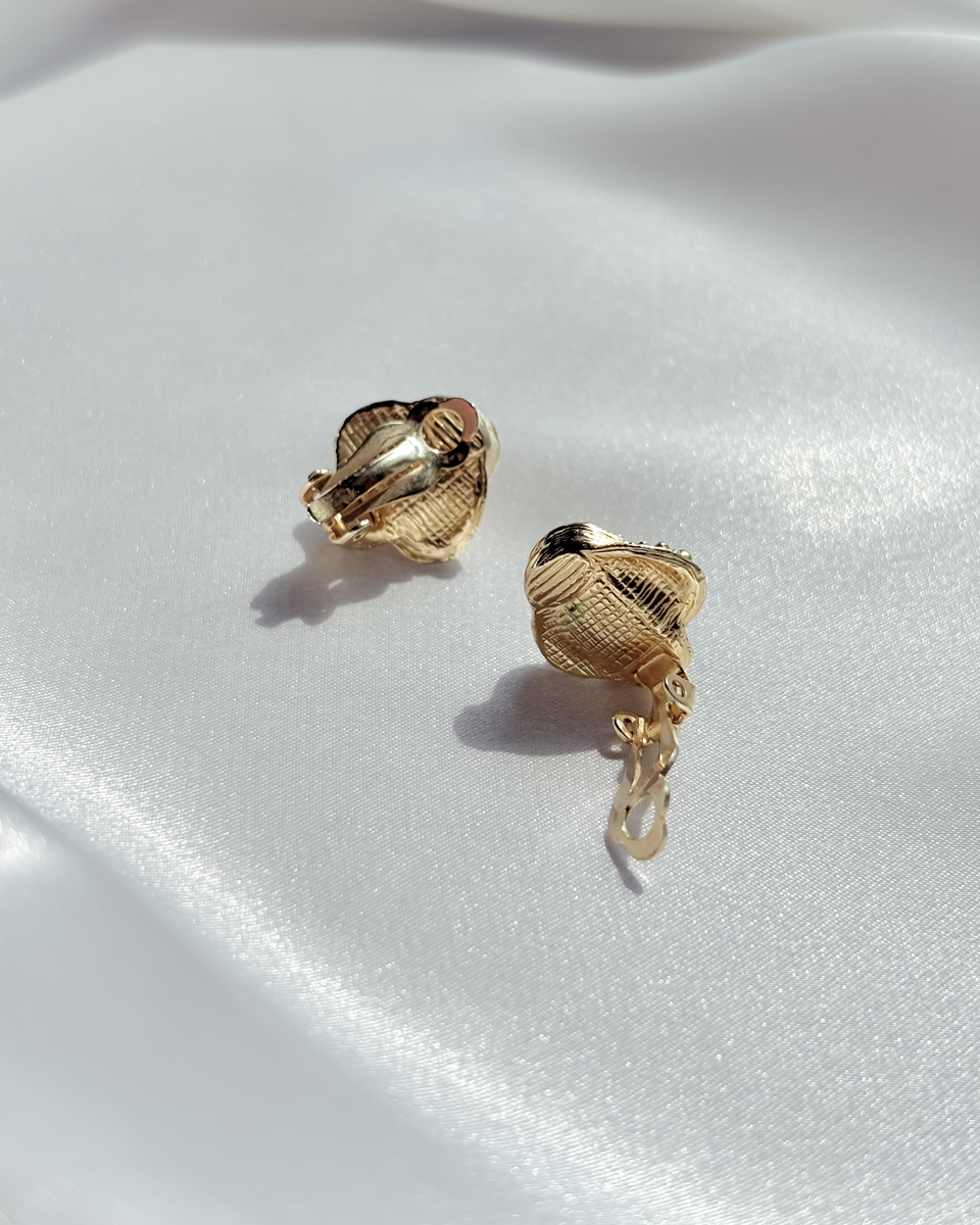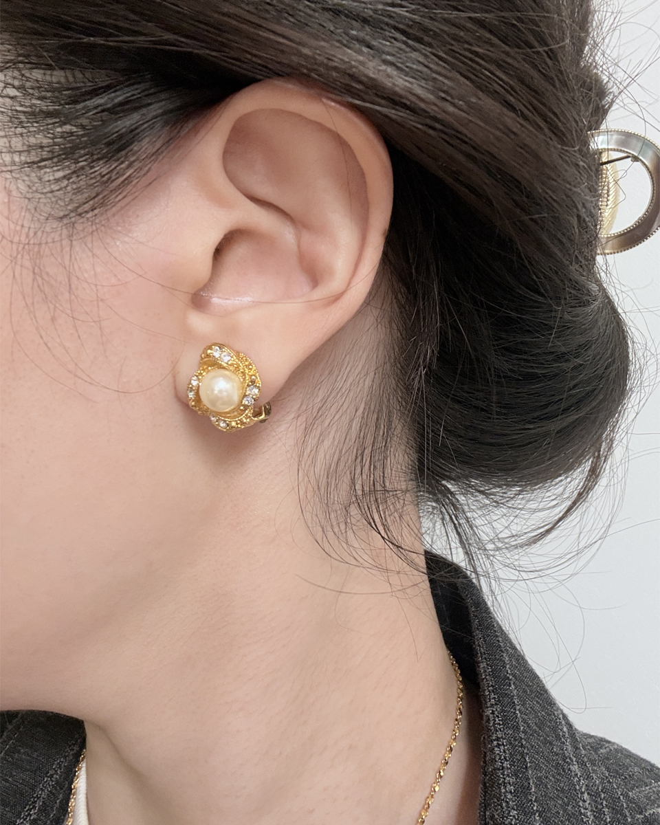 [올드스톡] 골드 로즈 펄 클립 온 이어링
