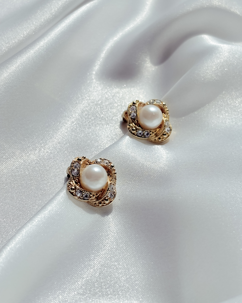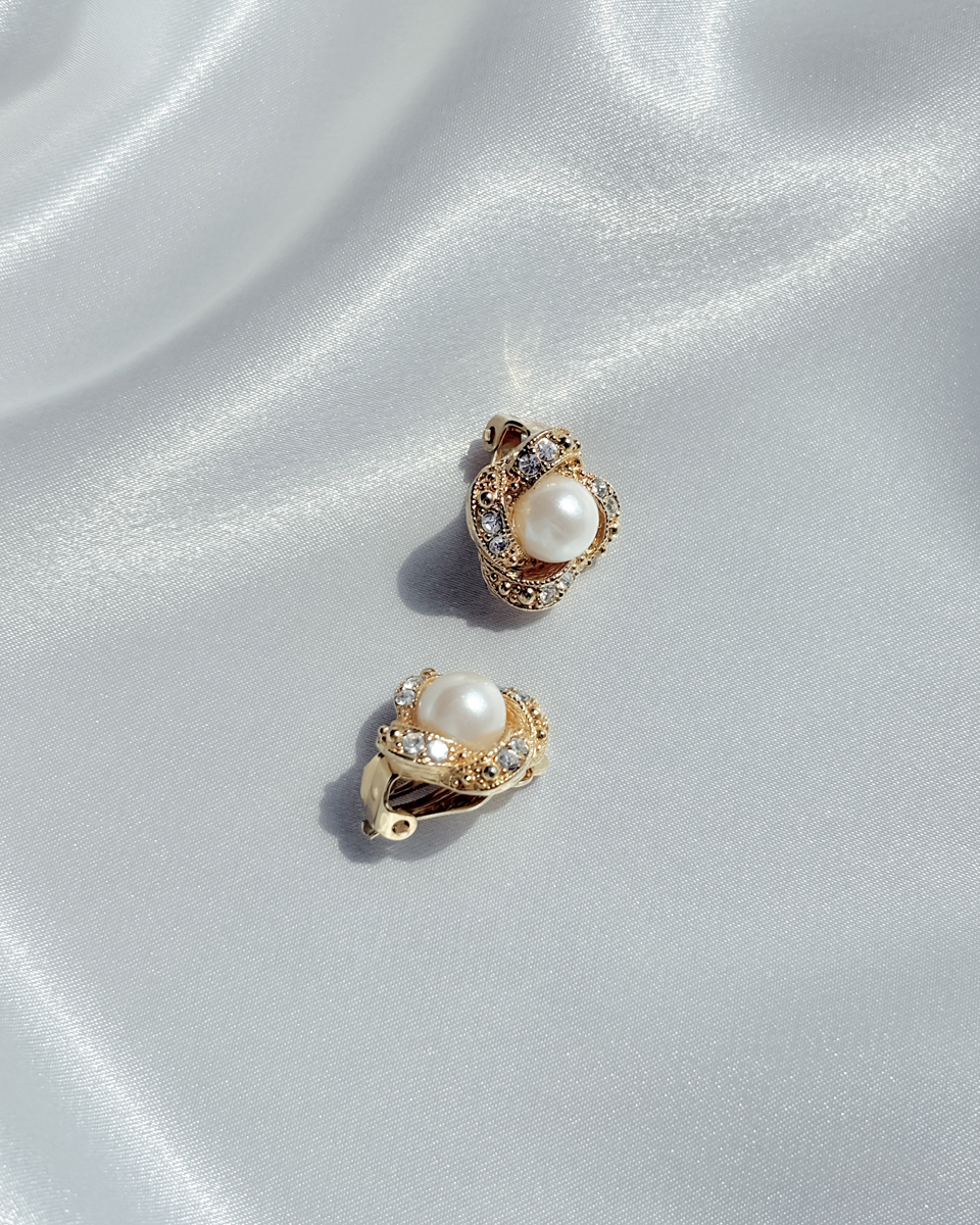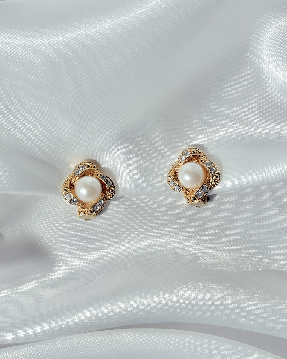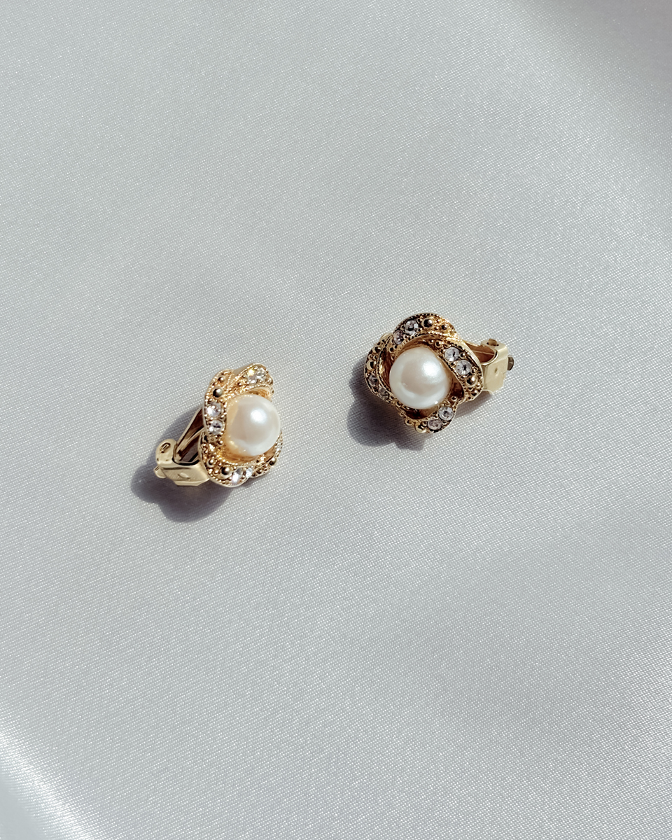 [올드스톡] 골드 로즈 펄 클립 온 이어링
